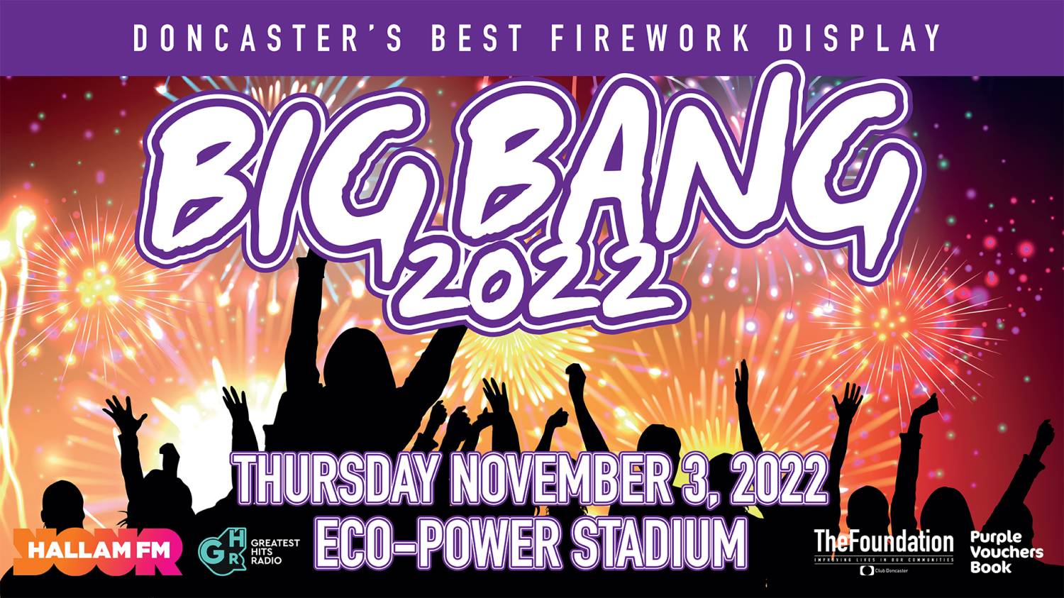 Club Doncaster in partnership with Hallam FM and Greatest Hits Radio have the answer for all your firework display plans as Doncaster’s best firework display returns on Thursday November 3 at the Eco-Power Stadium.