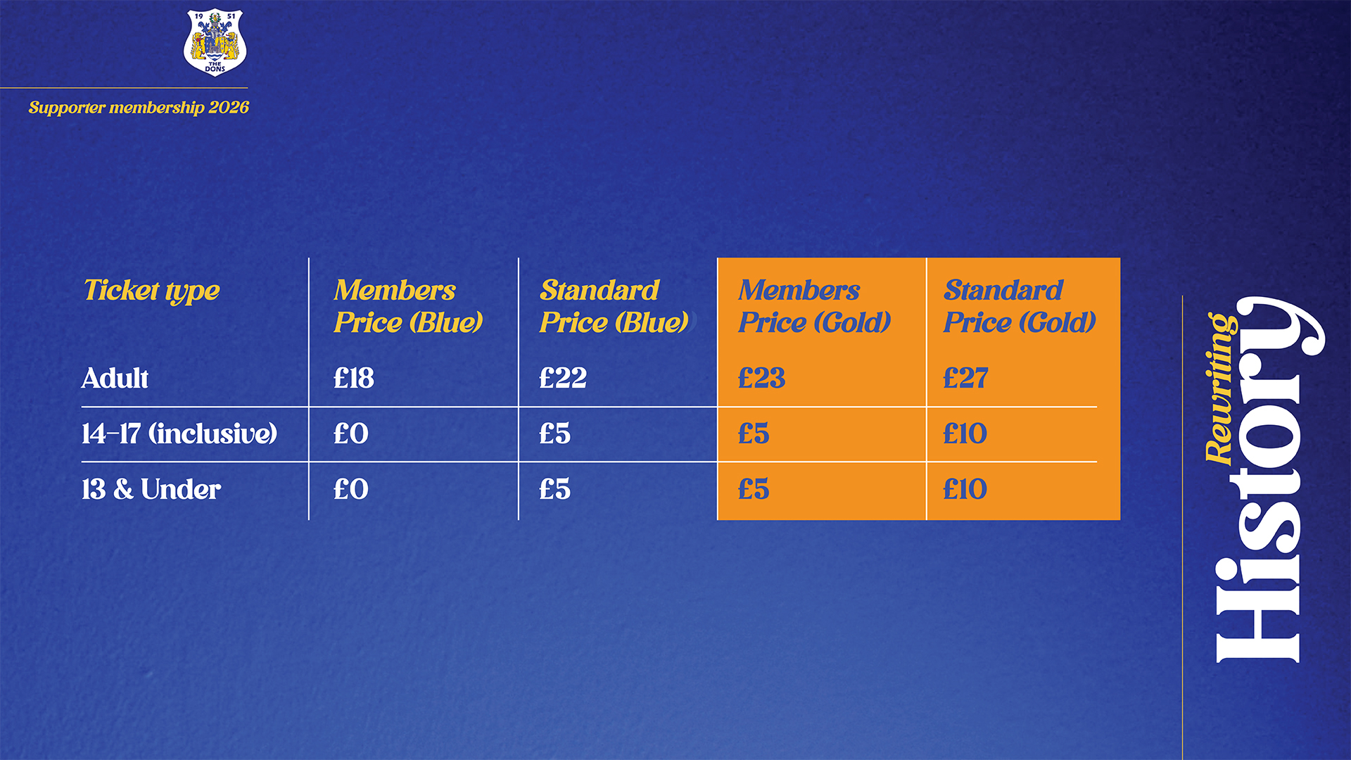 Don't forget the cheapest way to watch the Dons in 2026 is with a Season Membership with prices starting at just £99 per adult.