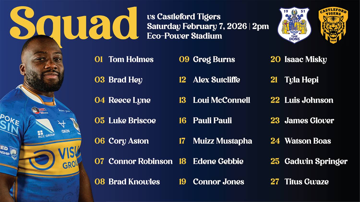 Richard Horne has named a 21 man squad to face Super League Castleford Tigers at the Eco-Power Stadium (2pm kick-off)